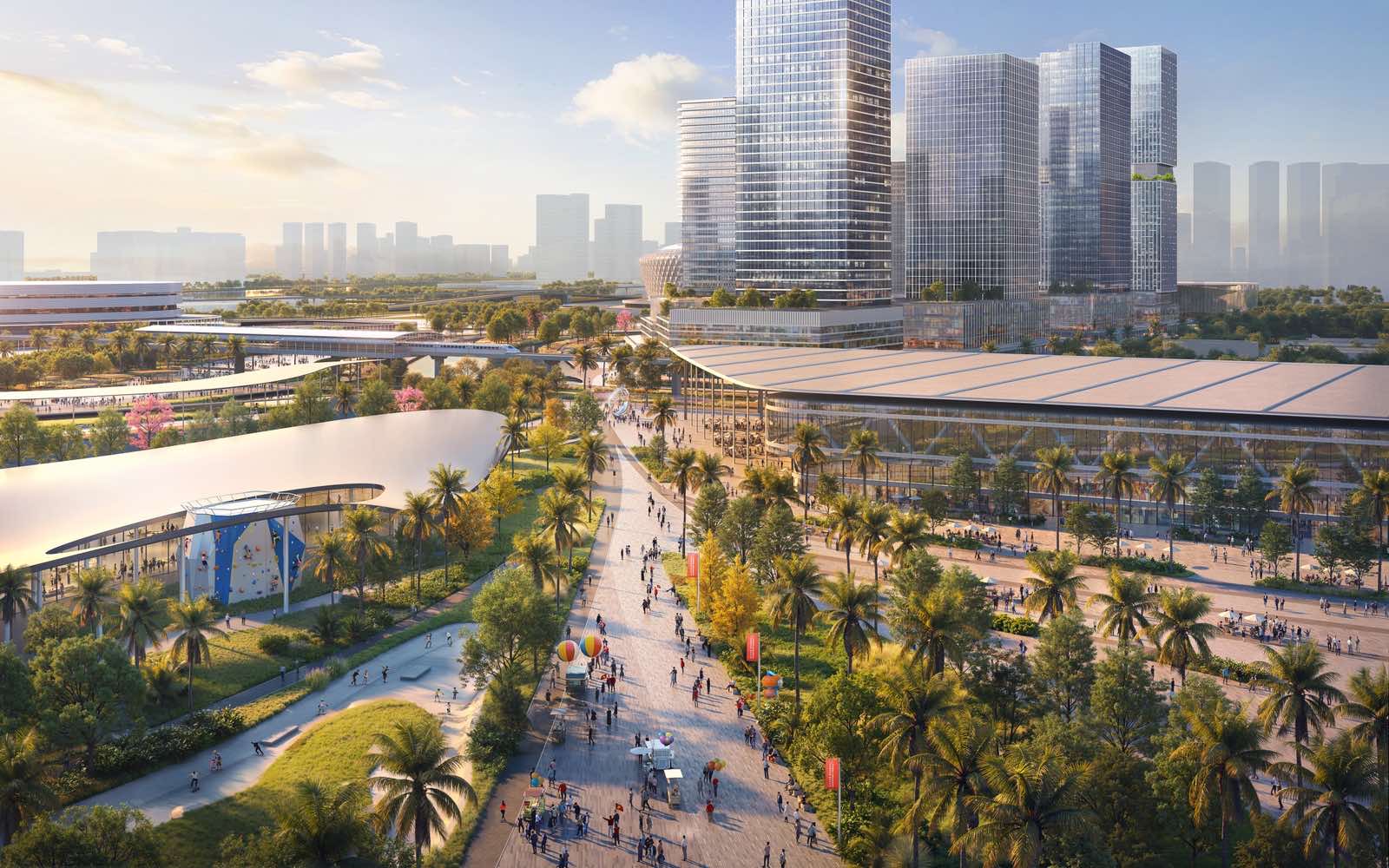 Song song với các công trình thể thao, dự án còn dành quỹ đất lớn cho không gian công cộng và dịch vụ đô thị. Công viên công cộng, quảng trường kéo dài xuyên suốt và liên kết các chức năng của toàn dự án kết nối các công trình thể thao, tạo vùng đệm sinh thái và không gian sinh hoạt cộng đồng. Với cảnh quan không gian mặt nước, nơi đây sẽ tổ chức các hoạt động vui chơi, nghỉ ngơi, thể thao cộng đồng, tổ chức lễ hội - sự kiện ngoài trời, hình thành các không gian ẩm thực, mua sắm và giao lưu văn hóa, góp phần nâng cao chất lượng sống cho người dân.